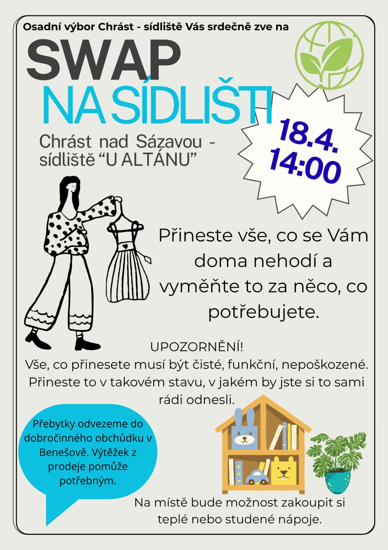 Rádi bychom Vás pozvali na jarní SWAP na sídlišti. Bude se konat 18.4.2026 od 14°° hodin v sídlišti u altánu.